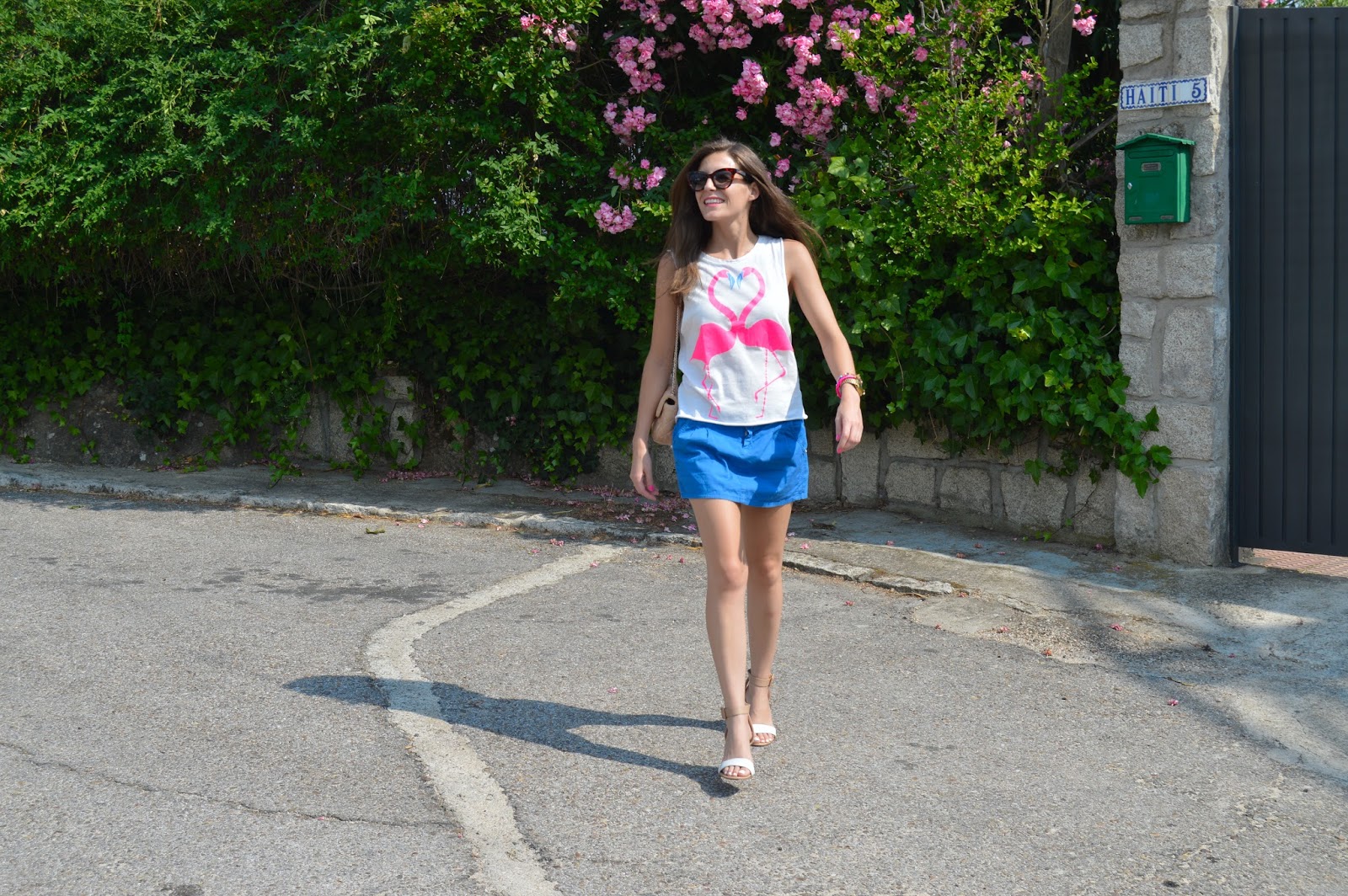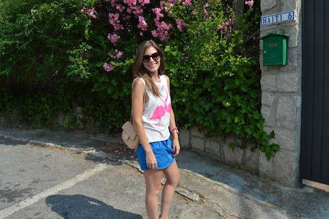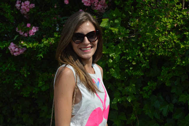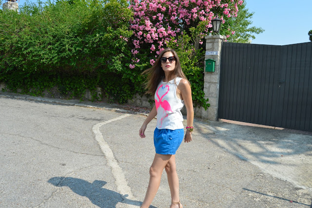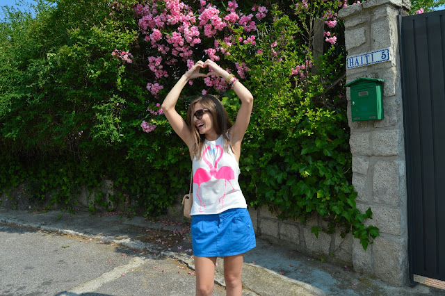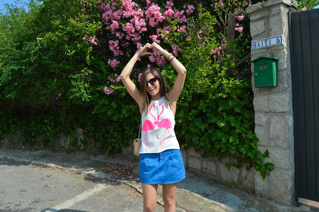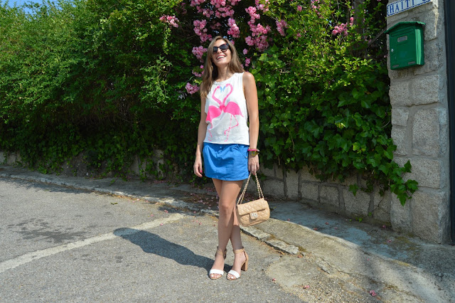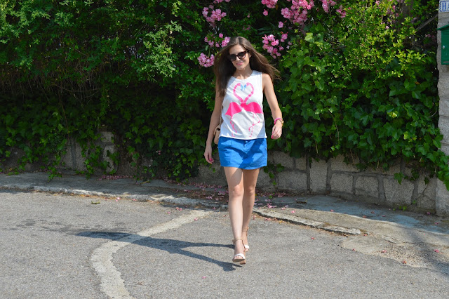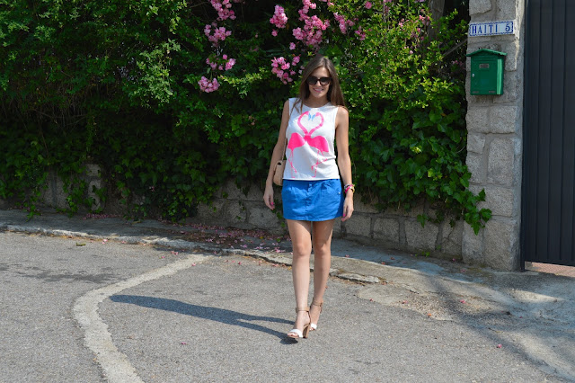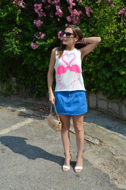 Love keeps us happy. In a few days, it will be my birthday and it makes me excited every single year. I’m happy to be one year older, it’s a sign that I’m living my life and I’ll share with you an special post. Keep tuned to see the special post. Today, I’m wearing a flamingo love shirt, combining with my blue skirt and beige accesories. I love these kind of outfits for shopping days, comfy but some stylish. We all know that heels can feel great our outfit.
