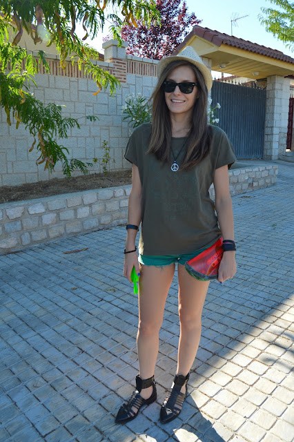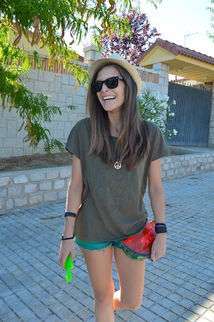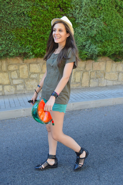 today, it’s all about green where I share with you this total summer green look. I combined my look with black accessories and a watermelon clutch, so refreshing! A summer must to wear on a hot days it’s a hat and I chose this cutey with my natural straight hairstyle. simple and chic, what do you think about this look?