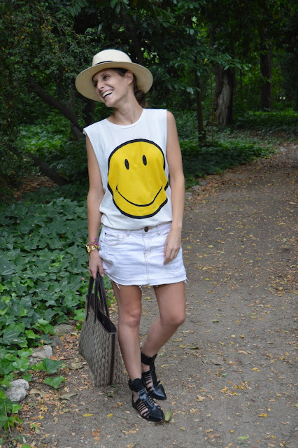 Little by little we’re taking better picts and doing a better job. I hope you like it. I’ve never thought that I could do a fashion blog, being honest I like it and we two have fun taking picts of my daily looks. Yesterday, we were at El campo del Moro park in Madrid, it’s a peaceful and beautiful place to spend some hours walking through its different lovely places. every time I go there, I used to get lost watching every detail and being absorbed by its beauty. today, I chose to wear a simple outfit making my smiley t-shirt the main thing. Don’t forget to smile and remember it’s your best accessory. What do you think about today’s post? Wish you a happy thursday! 🙂