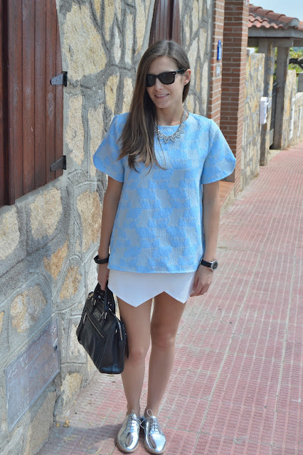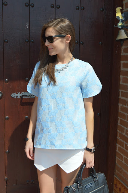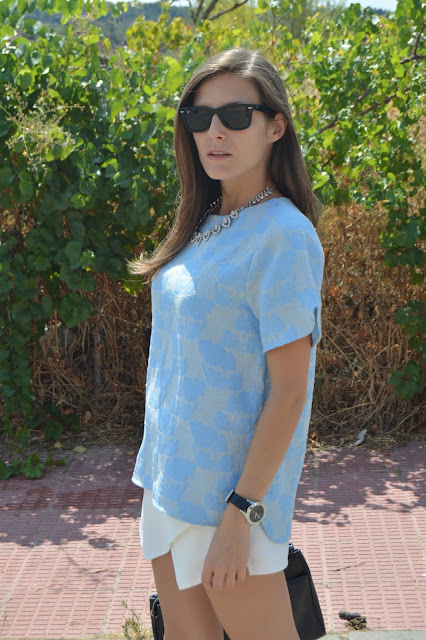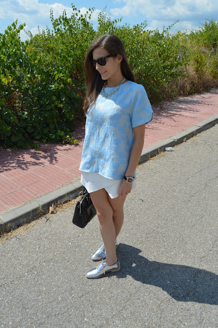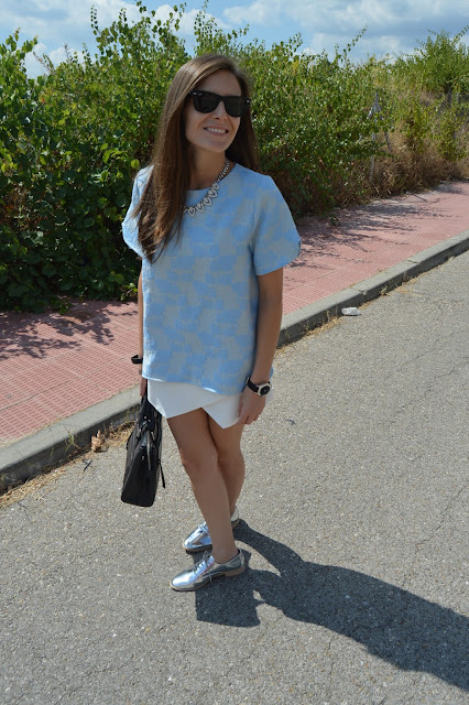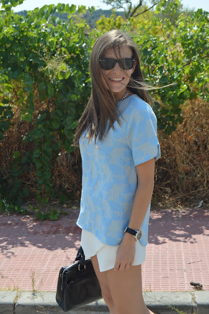 Hi, beauties! Today, I share with you this look that I wore a couple of days ago for a classy lunch. After a long morning of hard work, we took a break for a lunch and this is the look I chose to wear. I combined this white and blue outfit with my new shiny shoes and watch by marc jacobs. I love this look, what do you think about it? thanks for your comments. 🙂