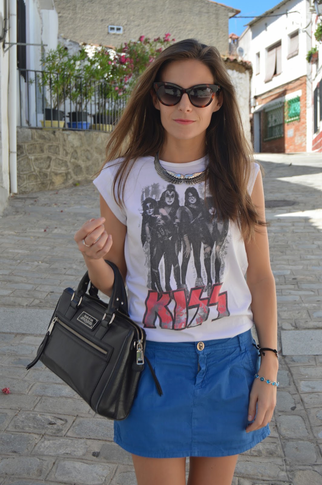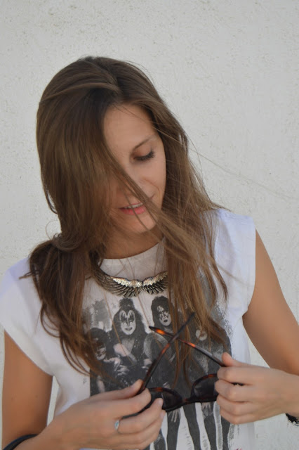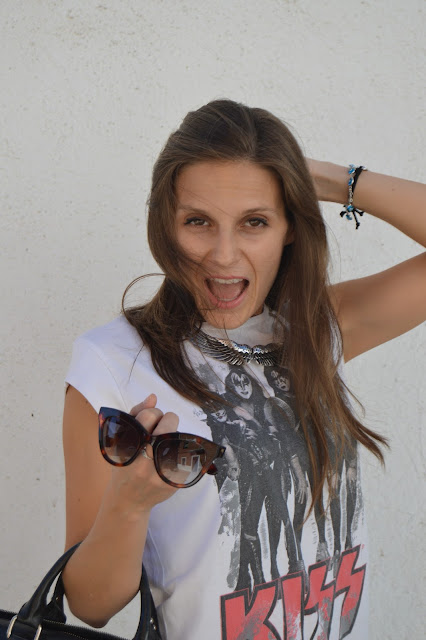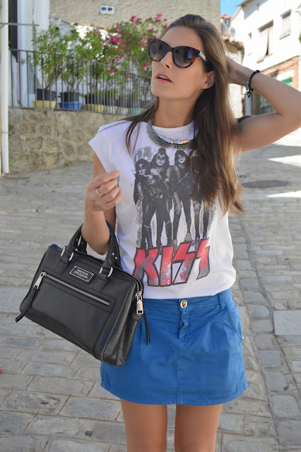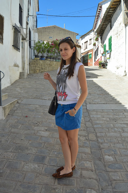 I wore this outfit some weeks ago and I wanted to share it with you, where I mixed t-shirt and shoes prints with an old skirt that I still love it. I’m totally in love this look which I did mine, adding some personal final touches as shoes, sunglasses, necklace or bag are. Don’t you love it? thanks for your comments. 🙂