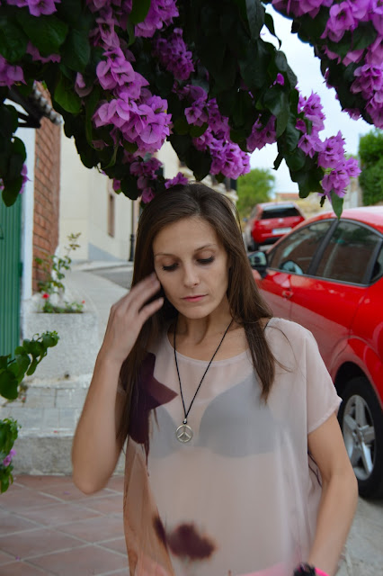 Today, it’s a comfy and easy look all over pink, we were lucky to find these lovely purple flowers, don’t you love pink and purple combo? I’m a big fan of basic colours as you already know that so I chose black accessories as I usually do. do you like today’s look? thanks for your comments