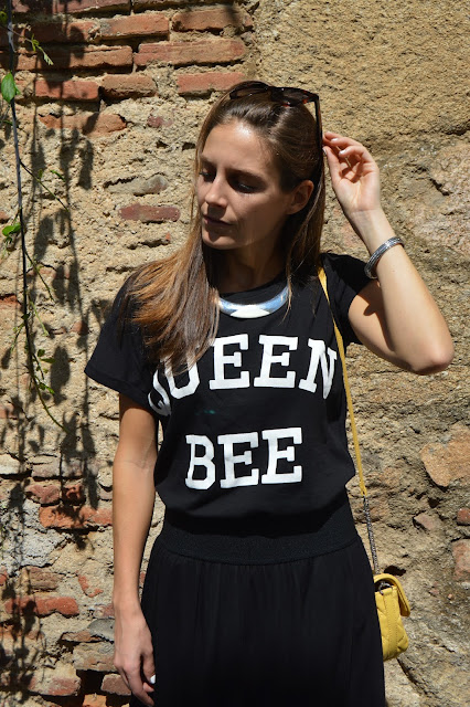 Today, I chose to wear a total black look with a yellow touch on my purse, wearing this new t-shirt from primark. I also added a funny and classy final touch on my shoes, I’m in love with them. Fashion is creation, feel free to create your own style. Be happy and happy tuesday! do you like this combo? thanks for your comments.