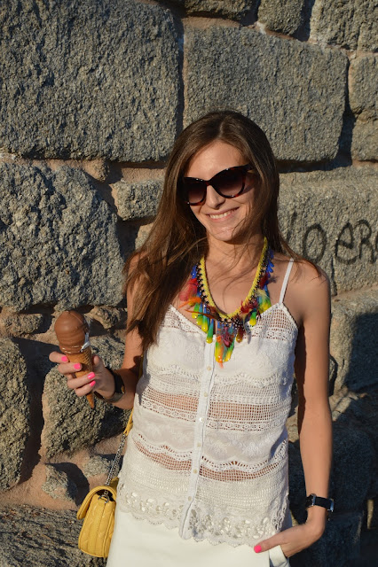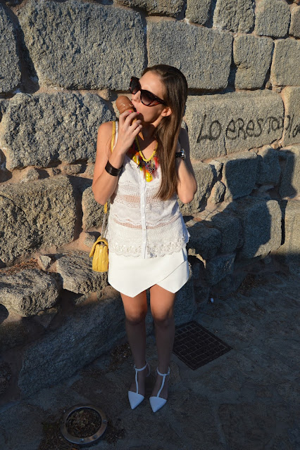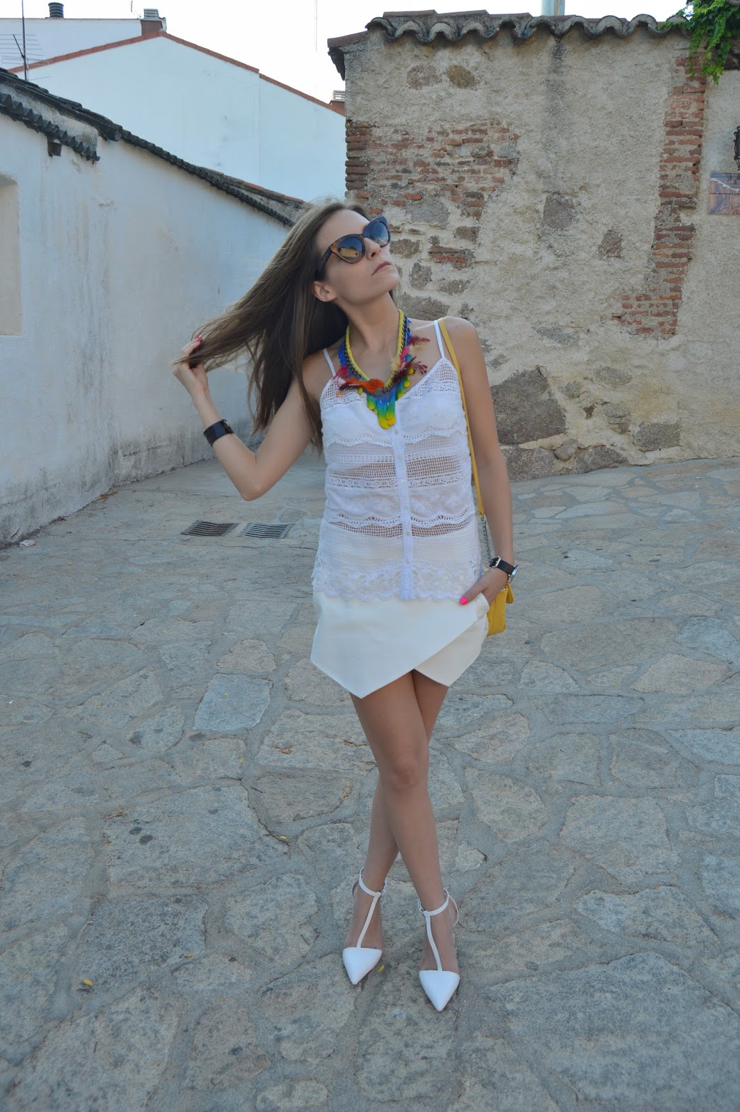 About today’s look, I chose to wear all in white that’s a thing a didn’t do in whole the summer with a touch of colour on my necklace and bag. It’s easy to wear all in white, everything will work with this colour, I gave a classy touch on my shoes where I remember Coco Chanel quote: ‘A woman should be two things: classy and fabulous.’ Hope you are having a great day. Thanks for your comments