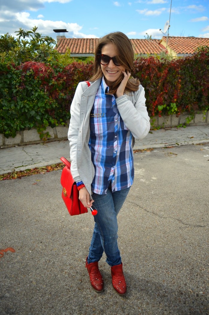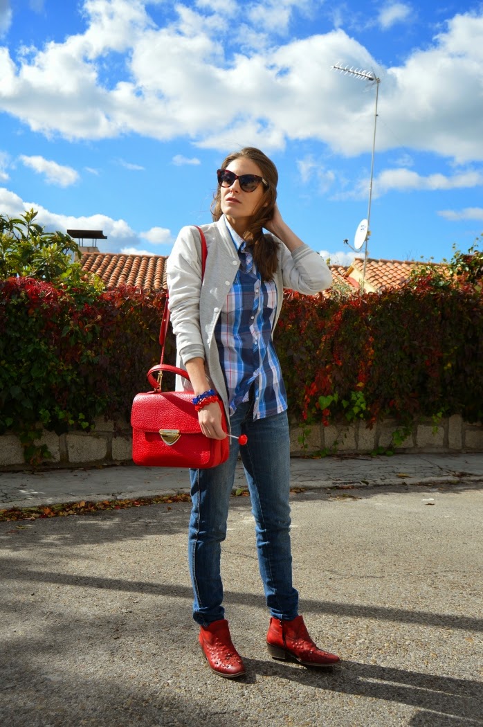 Happy Halloween! I’m tasting just a treat lollipop and I’ll have to buy some for the kids because I ate more than one. I like sweets, Hahahaha I love when leaves turn yellow and red, a view gift which means that autumn season is in all its glory. It’s a casual look where I’m wearing my all time fav red bag with a shirt and jeans, red is my fav colour and I love to wear this. Enjoy today’s pics and have a rad Halloween day and night. Which is your comfy and easy combo?