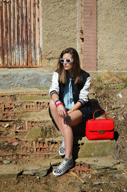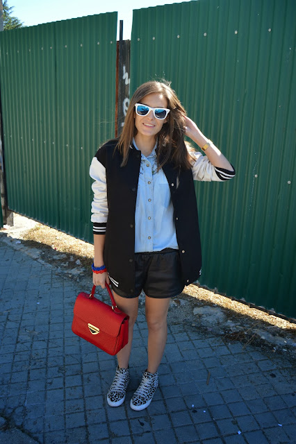 Days are going faster and here you have my yesterday look, where I combined a fake leather shorts with a bomber, neutrals are always in my closet, giving the final touch on my beloved red bag. I’m also wearing two new bracelets that were bought at a little stand on the street a couple of days ago.