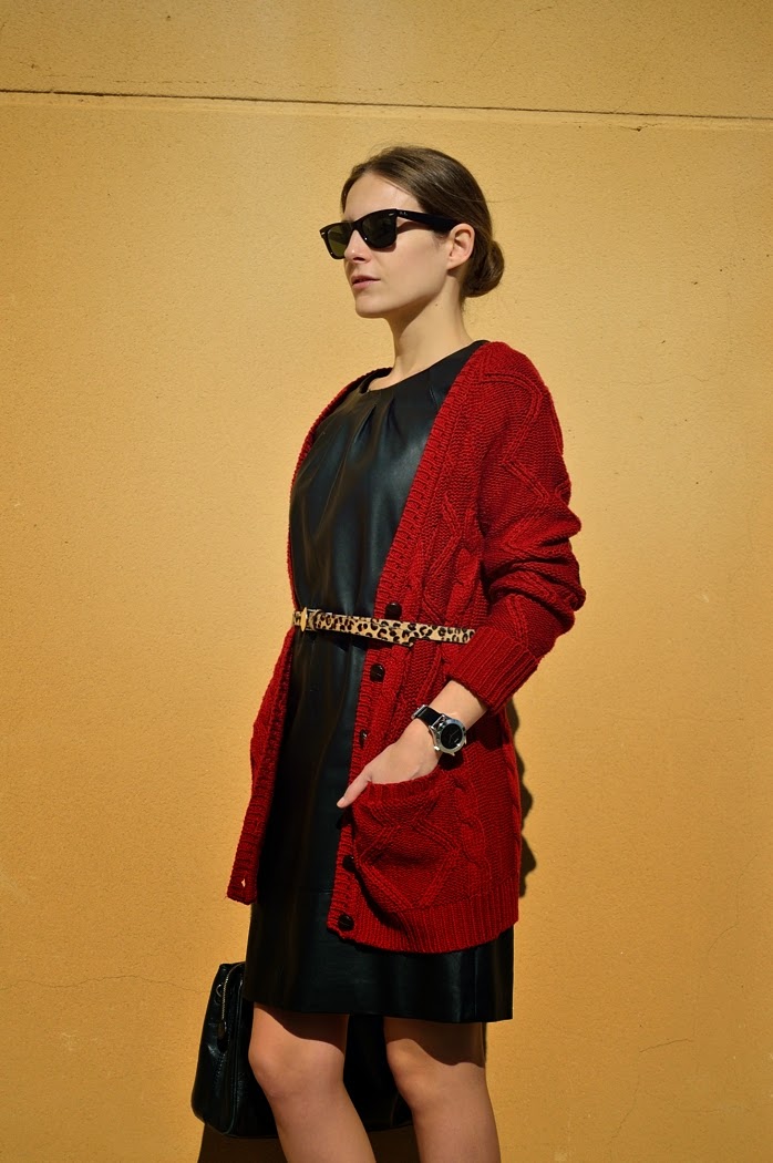 Three elements on today’s outfit: leather dress, burgundy colour and leopard. It’s one of my fav classy looks. It is easy, I opted for my hair style a low bun and that’s the result! 🙂