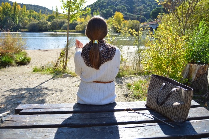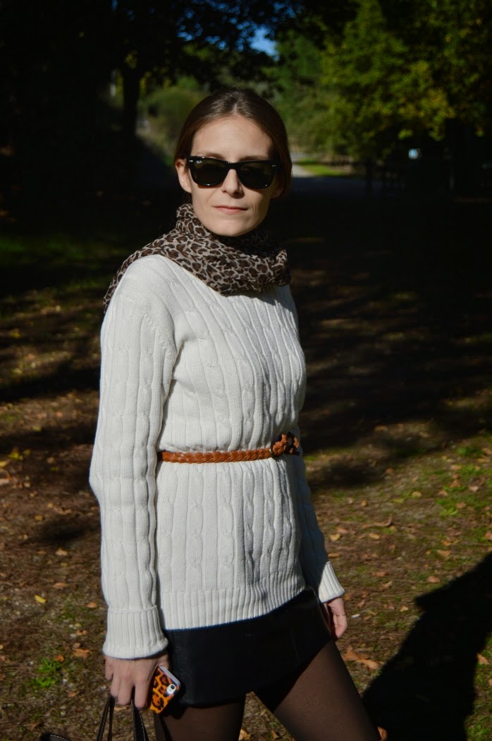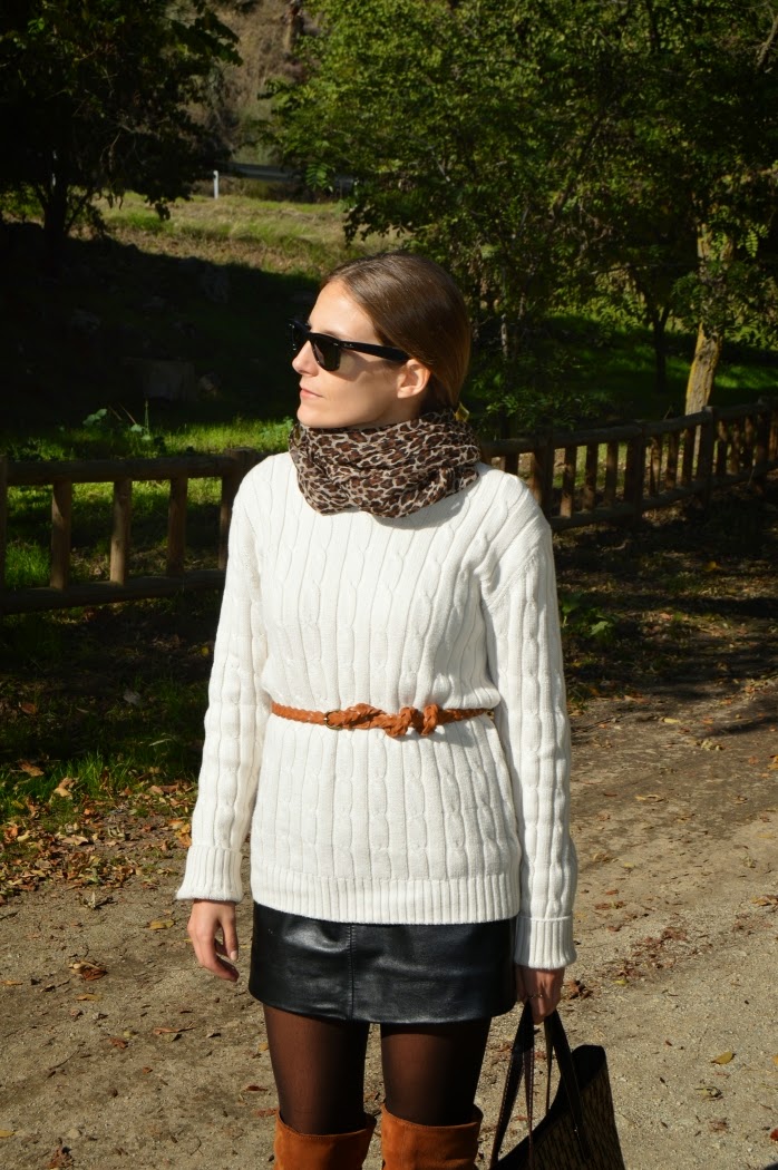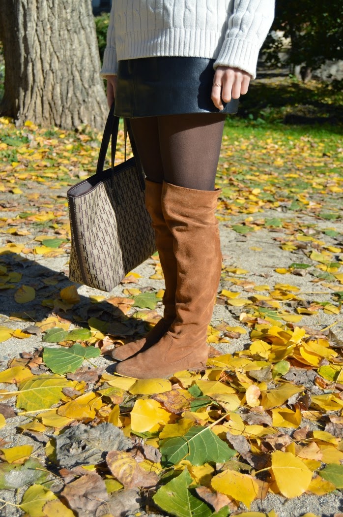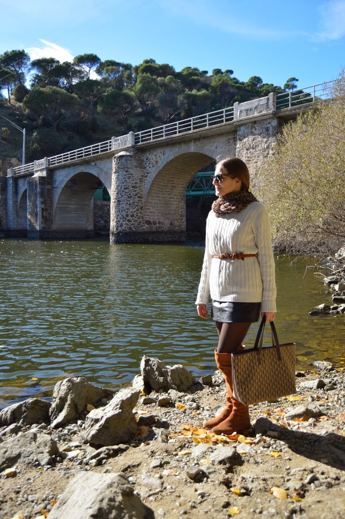 La semana pasada mientras hacíamos las fotos descubrimos un lugar encantador, creo que haremos más fotos aquí. Sobre el look, elegí mis antiguas botas altas marrones con una falda de piel negra y un jersey blanco, algo casual. Tengo tres pares de botas altas en mi armario y me las pondré esta temporada. Cómo os pondríais unas botas altas?