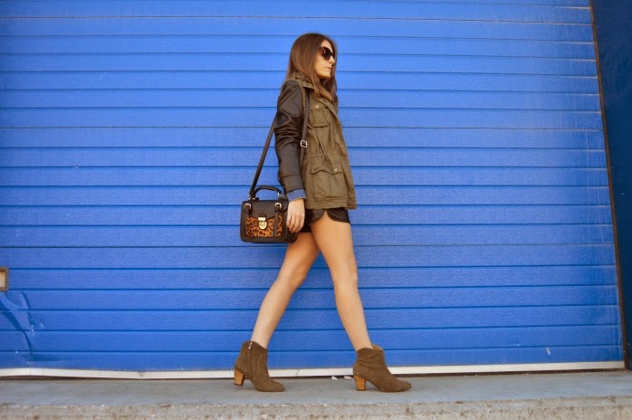 Two days ago, the weather was nice when I was wearing faux leather shorts with denim shirt and a leopard bag. It is one of my basic looks where leather+denim+leopard are a perfect combo.